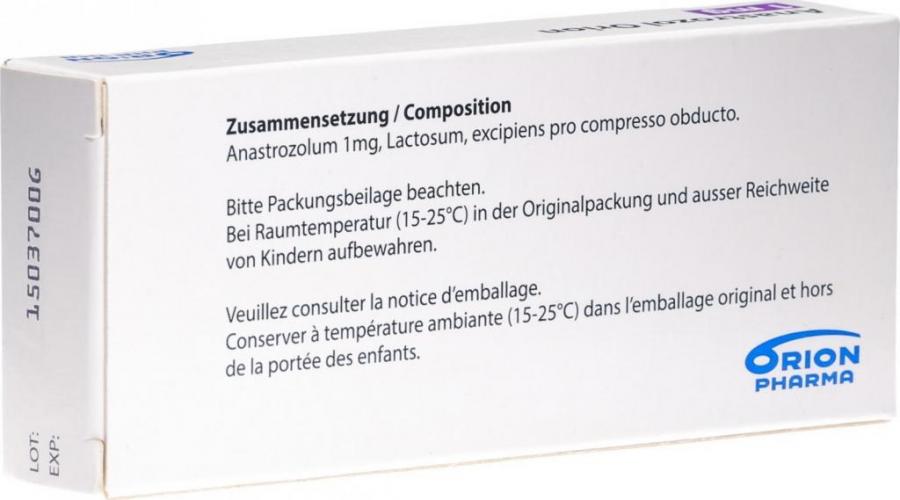 Действующее вещество: анастрозол – 1 мг и вспомогательные вещества.