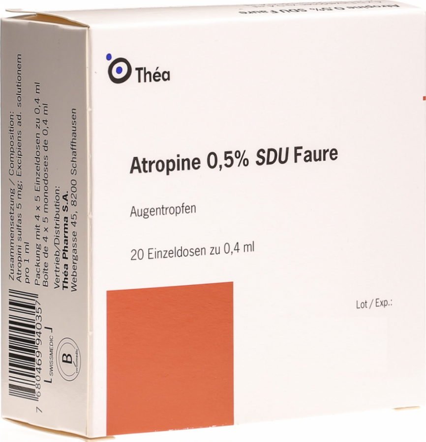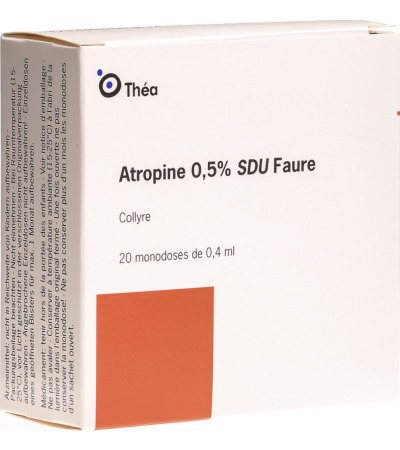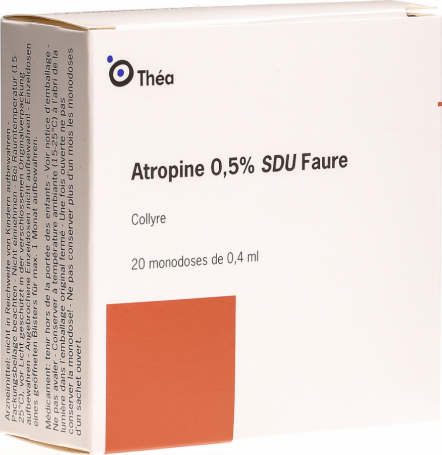 Глазные капли Atropine SDU Faure содержат вещество для доставки нервного сигнала, которое оказывает успокаивающее действие на цилиарную мышцу, а также расширяет зрачок. Эти эффекты используются для диагностики (острота зрения), лечения косоглазия и иммобилизации воспаленной радужки. Через 24-48 часов основной эффект глазных капель исчезает, однако, в зависимости от пигментации глаз, эффект обнаруживается до 14 дней после нанесения.