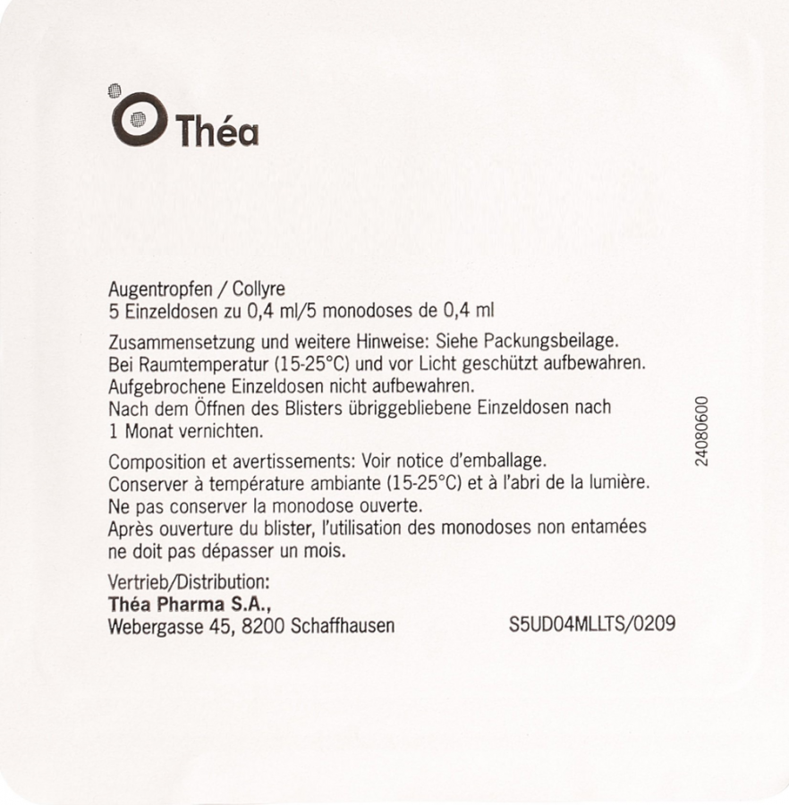 Не храните открытый контейнер с неиспользованным раствором, так как глазные капли не сохраняются в однократных дозах.