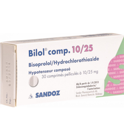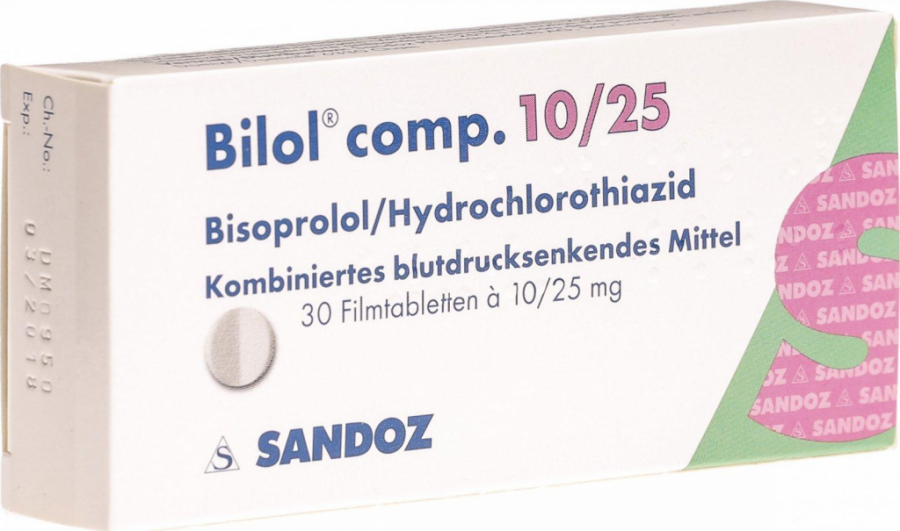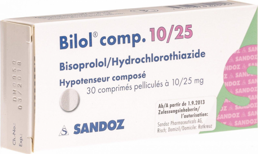 Если имеется известная гиперчувствительность к бисопрололу, гидрохлоротиазиду, эксципиенту Bilol comp.Bilol comp. не применяется .