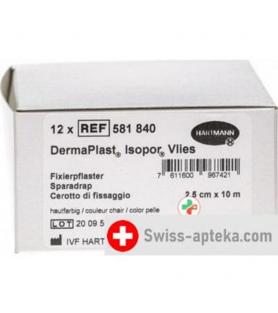 Dermaplast Isopor фиксирующий пластырь 10мX2.5см Vlies телесный цвет 12 штук