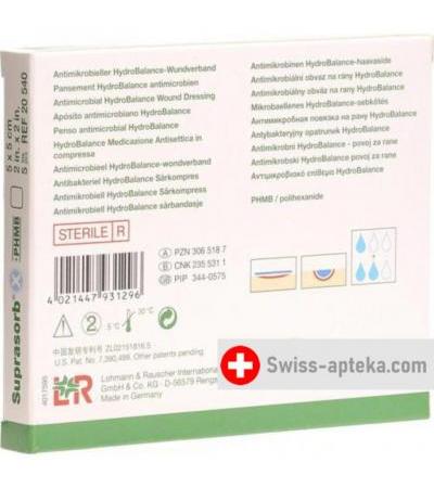 Suprasorb X + Phmb повязка для ран Hydrobalance 5x5см стерильный 5 штук