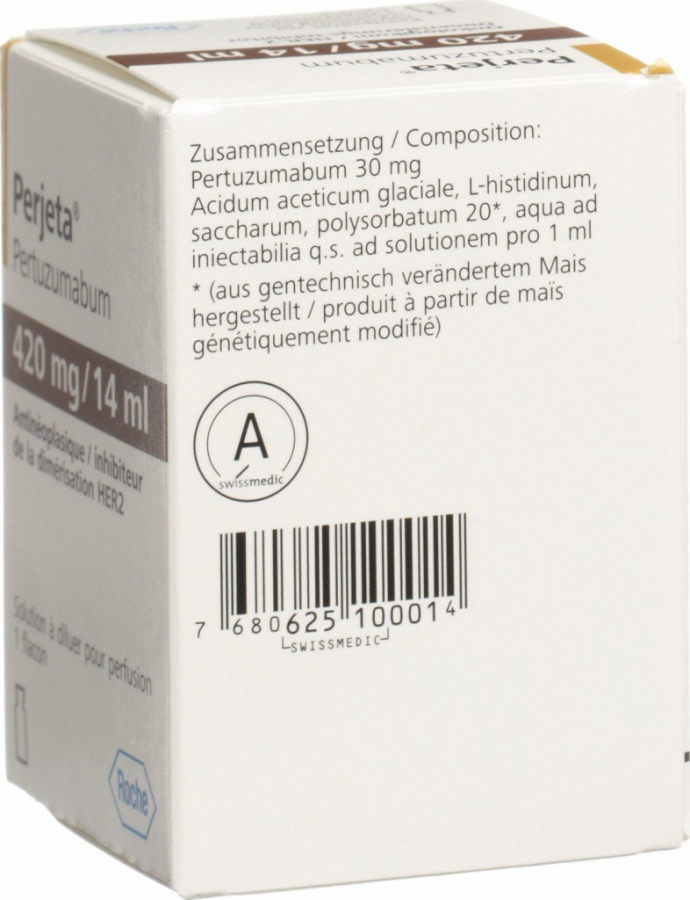 Трастузумаб: при применении в комбинации с препаратом Перьета™ нагрузочная доза трастузумаба - 8 мг/кг массы тела в виде в/в капельной инфузии в течение 90 мин; поддерживающая доза - 6 мг/кг массы тела каждые 3 недели в виде в/в капельной инфузии в течение 30-90 мин. Поддерживающую дозу вводят через 3 недели после нагрузочной.