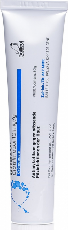 Действующее вещество: 1 г пасты кожной содержит клотримазола 10 мг