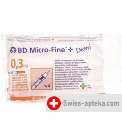 BD Microfine+ Demi U100 Insulin Spritzen 0.30мм x 8мм 100x 0.3мл