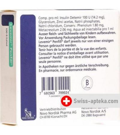Инсулин Левемир 5 готовых картриджей 3 мл
